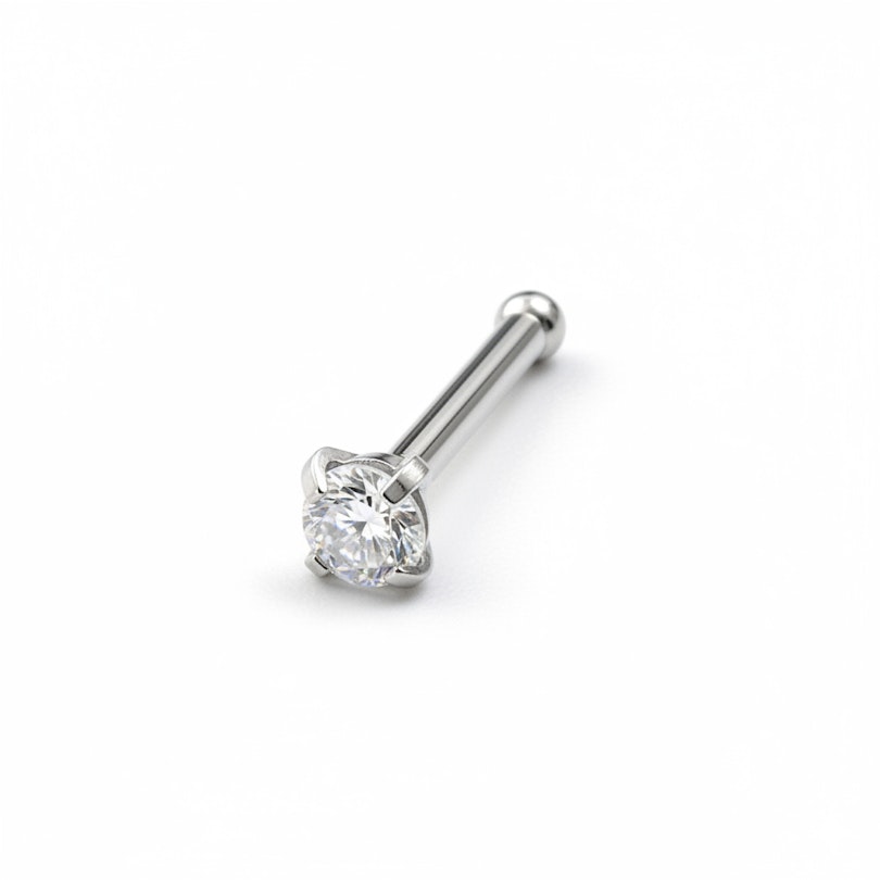 Själva smycket är gjort av kirurgiskt stål och mäter cirka 6 mm i längd och 0,8 mm i trådstorlek. Det betyder att du kan använda smycket oavsett om du har fått din näspiercing med en nål eller med en piercingspistol. Smycket sitter fast med hjälp av den lilla kulan som sitter i änden av staven – kulan fungerar som ett motstånd som hindrar att smycket faller ut i tid och otid.