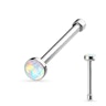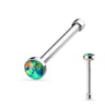 Nässtaven är ca. 6 mm. lång och är utrustad med en liten rund kula i opalstenens motsatta ände för att säkra att smycket förblir sittande medan du bär det. Staven monteras lätt genom att pressa in den lilla kulan genom hålet där det sitter fast på ett säkert och elegant sätt. Den lilla kulan är endast något större än den annars 0.8 mm. tjock stav. Så du behöver inte bekymra dig för att det ska göra ont när du sätter i staven i näsan.