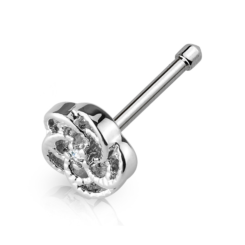 Rosen på framsidan av smycket mäter ca. 6 mm. i diameter, så när smycket sitter i näsan kan man tydligt se rosen och dess små fina detaljer. Vid den andra änden av staven sitter det en liten boll som är något större än stavens tjocklek. Kulan ska se till att staven inte faller ut ur näsan. Den är dock inte så pass stor att den inte åker ut ur hålet.