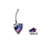Denna navelbarbell med rosa och lila hjärtan har två gulliga hjärtan som har den coola effekten att se både rosa och lila ut, beroende på ljuset och vinkeln. Ett mindre hjärta på toppen, 6 mm som bredast, och ett större i botten på 7,5 mm.