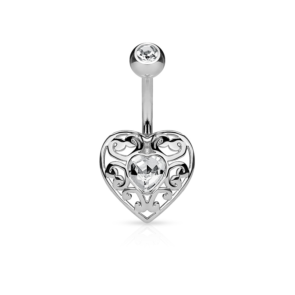 Smyckets hjärta har fått en detaljerad filigrandesign, som ger smycket ett djup och får den att se mer elegant ut. Navelpiercingen har utöver detta en trådstorlek på 1,2 mm och en totalt längd på 25 mm – som inte är helt galet stort, men gör det till ett snyggt och elegant smycke, som ändå är en aning diskret.