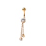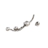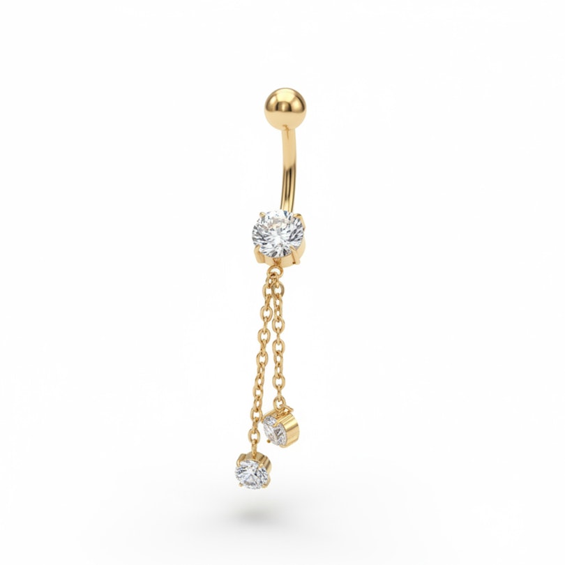Alla navelpiercingar är inte gjorda för att dra åt sig blickar, men denna navelpiercing i titan med kedja och stenar förstod uppgiften. En snygg barbell i titan med en glittrig sten, tillsammans med två nätta kedjor som hänger ner och fångar ljuset i varenda steg. Enkel glamour, för varför inte!