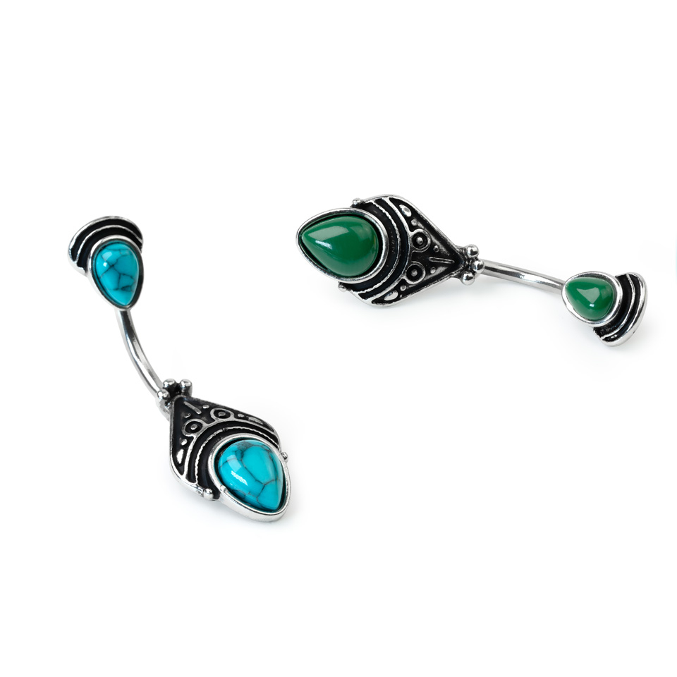 Namn: Navelpiercing med antik filigrandesign och droppformad sten