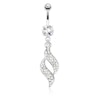 Brinner du också för bedårande navelsmycken i tidlös stil? Då har du nu chansen att kunna visa det i form av denna vackra navelpiercing med passionens snygga flammor i hänget. Symboliken i de två lågorna som slingrar sig runt varandra är både öppen och tidlös. Flammorna kan på så sätt vara symbol för vad du ä brinner för, och på så sätt kan smycket få en personlig betydelse för dig. Alternativt kan flammorna också symbolisera kärlekens flamma som delas av två individer som står varandra nära. Konceptet är som sagt fullständigt öppet för tolkning och man kan lägga till sin egen betydelse.