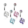 Ifall du är galen i navelpiercingar som verkligen kan synas och läggas märke till så är denna läckra navelpiercing kanske just något för dig. Det här smycket är enkelt i sin design men skiljer sig ändå ut med sin stora snygga fyrkantiga sten som utgör själva bindkulan.