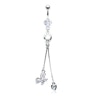En verkligen utsökt navelpiercing med långa kedjor och vackra motiv av klara stenar. Hänget som är super välgjord i sin design, starter med en liten ring som är dekorerad med ett hjärta av klar sten allra nederst. Under detta hjärta sitter som ännu en ring som de två långa kedjor är häktat fast på, uafhängigt av varandra. Kedjorna sitter alltså inte ihop och kan därför bägge rör på sig fritt i takt med din kropps rörelser.