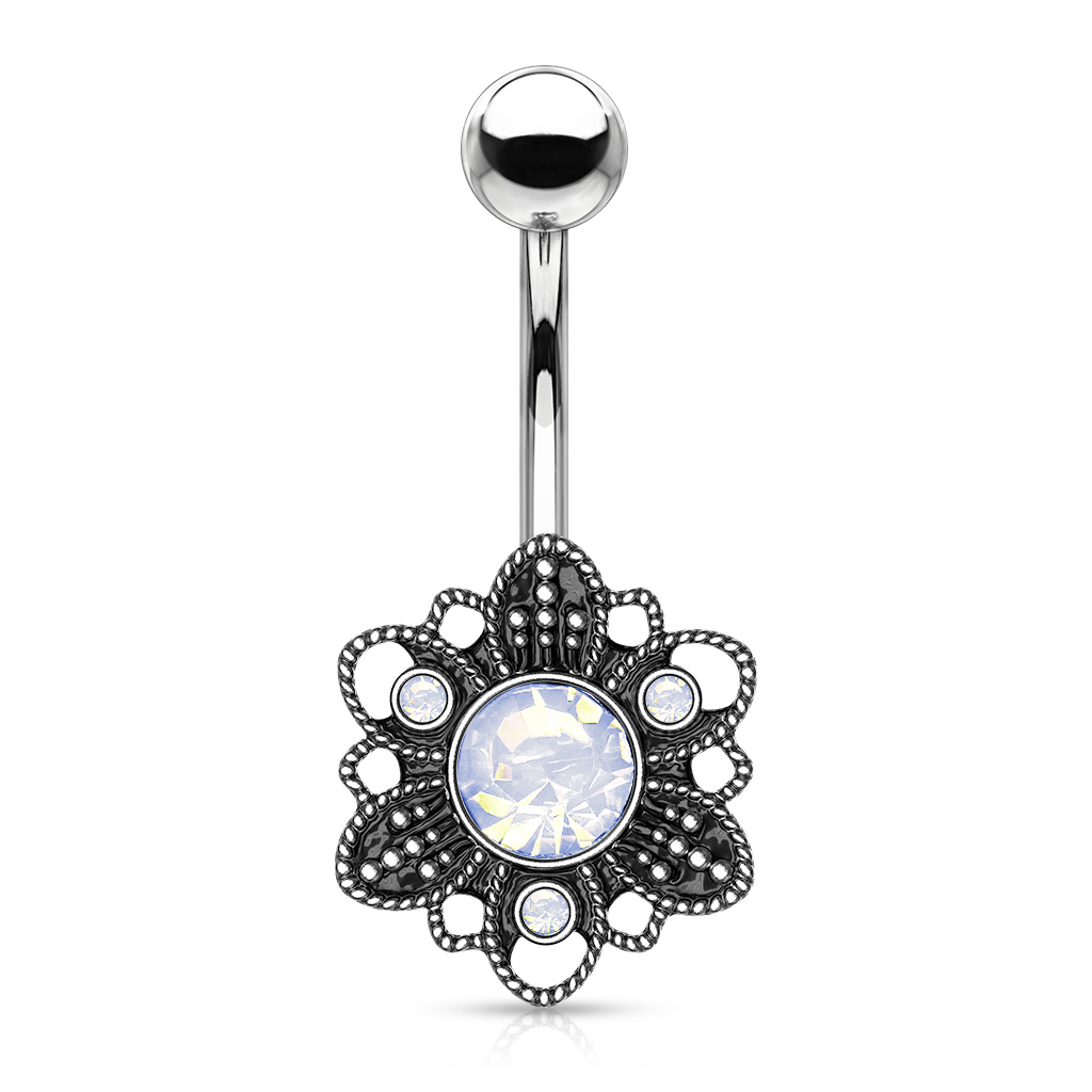 Namn: Navelpiercing med oxiderat blomma och sten av opalit
