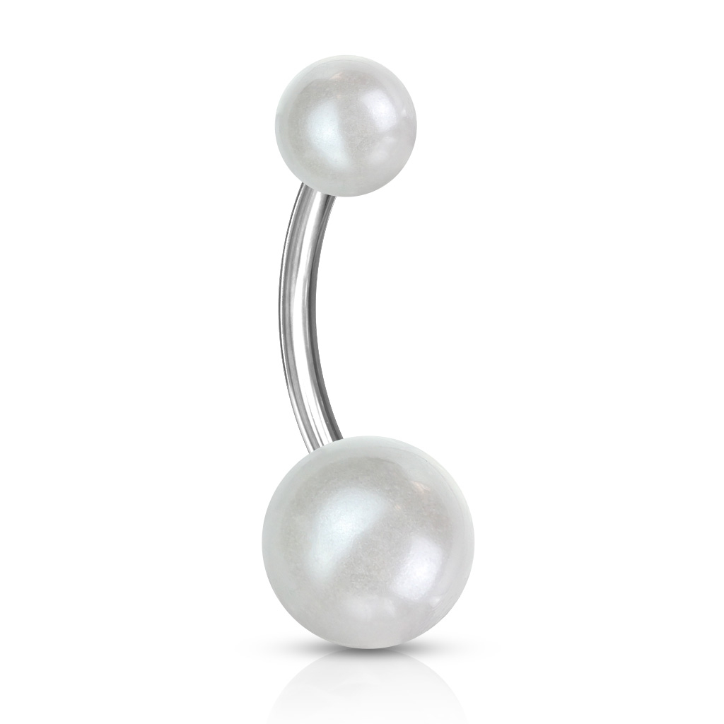 Pärlorna på dessa piercingsmycken är gjort med små kulor av akryl, pläterat med en snygg yta som får dem att likna pärlor.