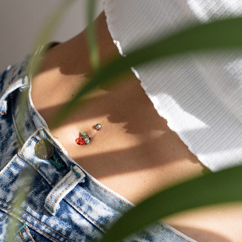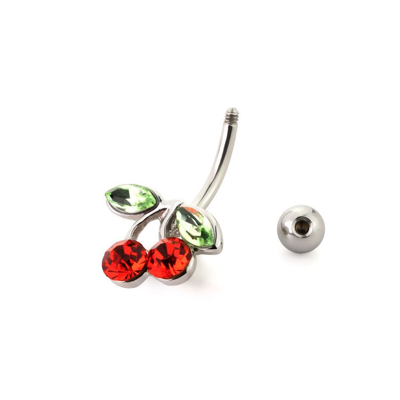 Vem älskar inte smaken av trevliga saftiga och söta körsbär? Det är visst inte många som kan tacka nej. Här har då chansen att få en vidunderlig navelpiercing av kirurgiskt stål med läckra solmogna körsbär som motiv.