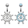 O'hoj fröken kapten, är det du som har befälet här? Var då inte blyg för att visa det i form av denna maritima navelpiercing med det förtjusande skeppshjulet som alla seglare borde ha.