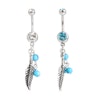 Denna navelpiercing är för dig som sätter pris på den naturliga skönhet som detta piercingsmycke speglar. Det läckra looken med blad, de stora stenarna i både topp- och bindkulan och de turkosa kulorna är allt ihop med att göra denna piercing naturlig snygg. .