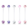 I varje ände av smycket sitter den en vacker kula som är gjort av akryl. Kulorna har blivit dekorerade med ett snyggt glitter mönster. Kulorna mäter 6 mm i kulstorlek och de kan väljas i flera färger. Du kan bland annat få ditt nya smycke med blåa glitterkulor, eller med klara glitterkulor.