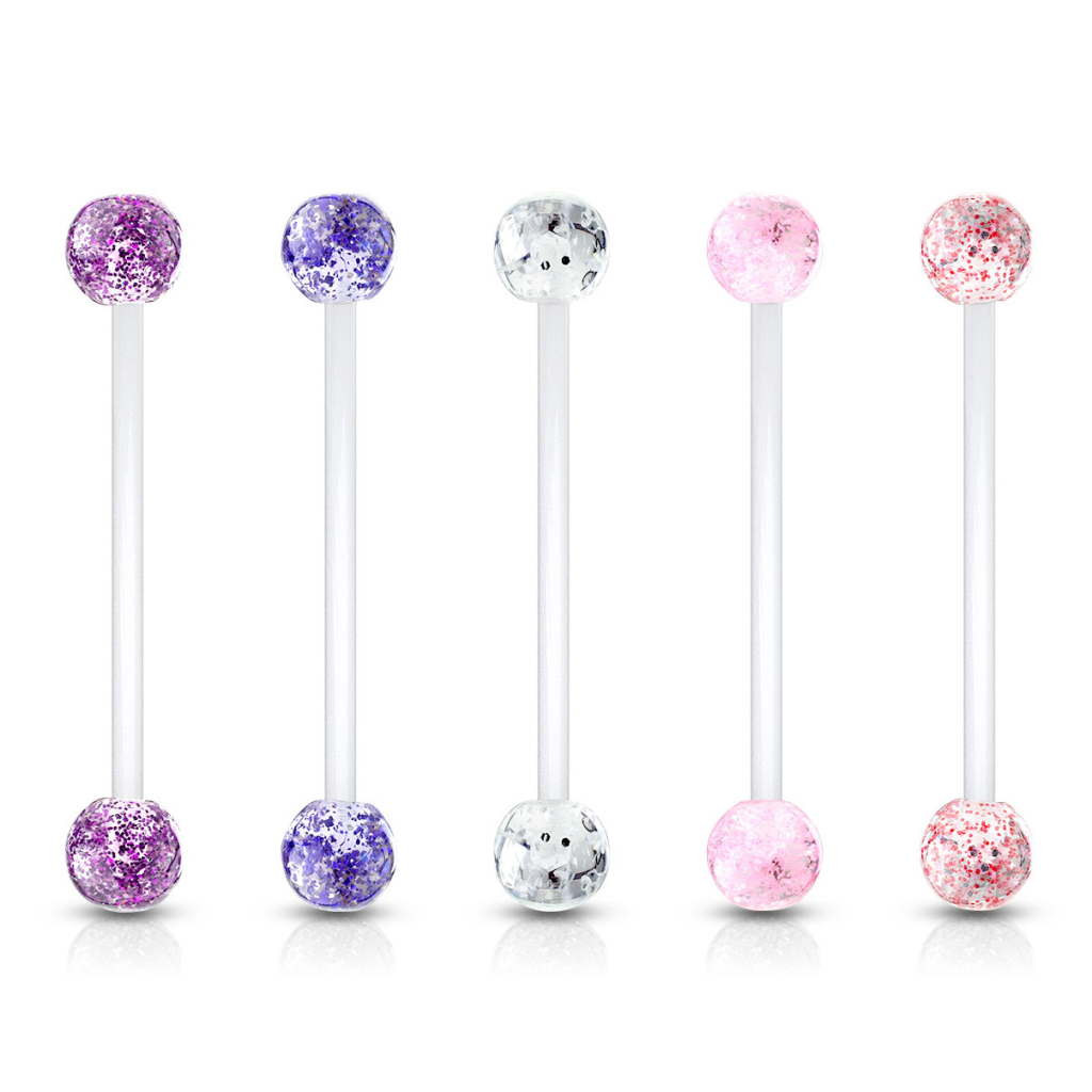 I varje ände av smycket sitter den en vacker kula som är gjort av akryl. Kulorna har blivit dekorerade med ett snyggt glitter mönster. Kulorna mäter 6 mm i kulstorlek och de kan väljas i flera färger. Du kan bland annat få ditt nya smycke med blåa glitterkulor, eller med klara glitterkulor.