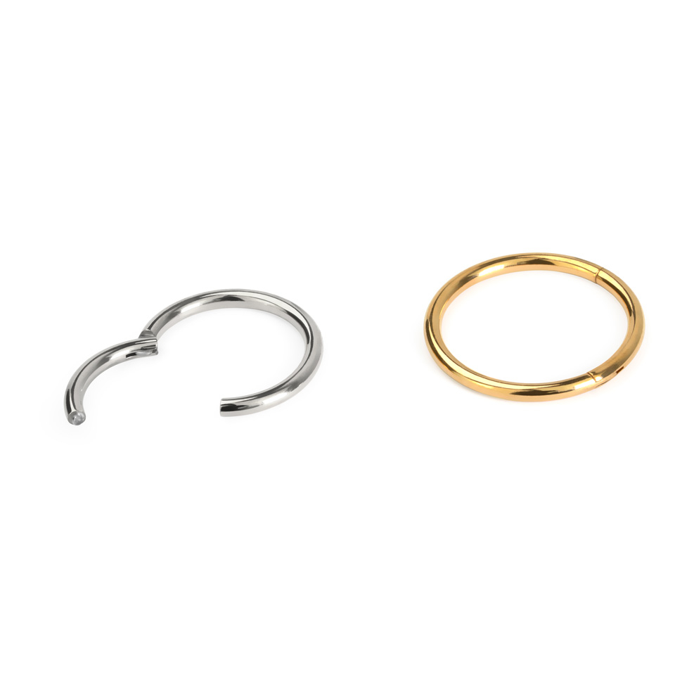 Denna oändliga ring kommer med ett gångjärn som gör den otroligt enkel att sätta in i piercingen. Det är en smart och praktisk mekanism eftersom den inte går att tappa bort.