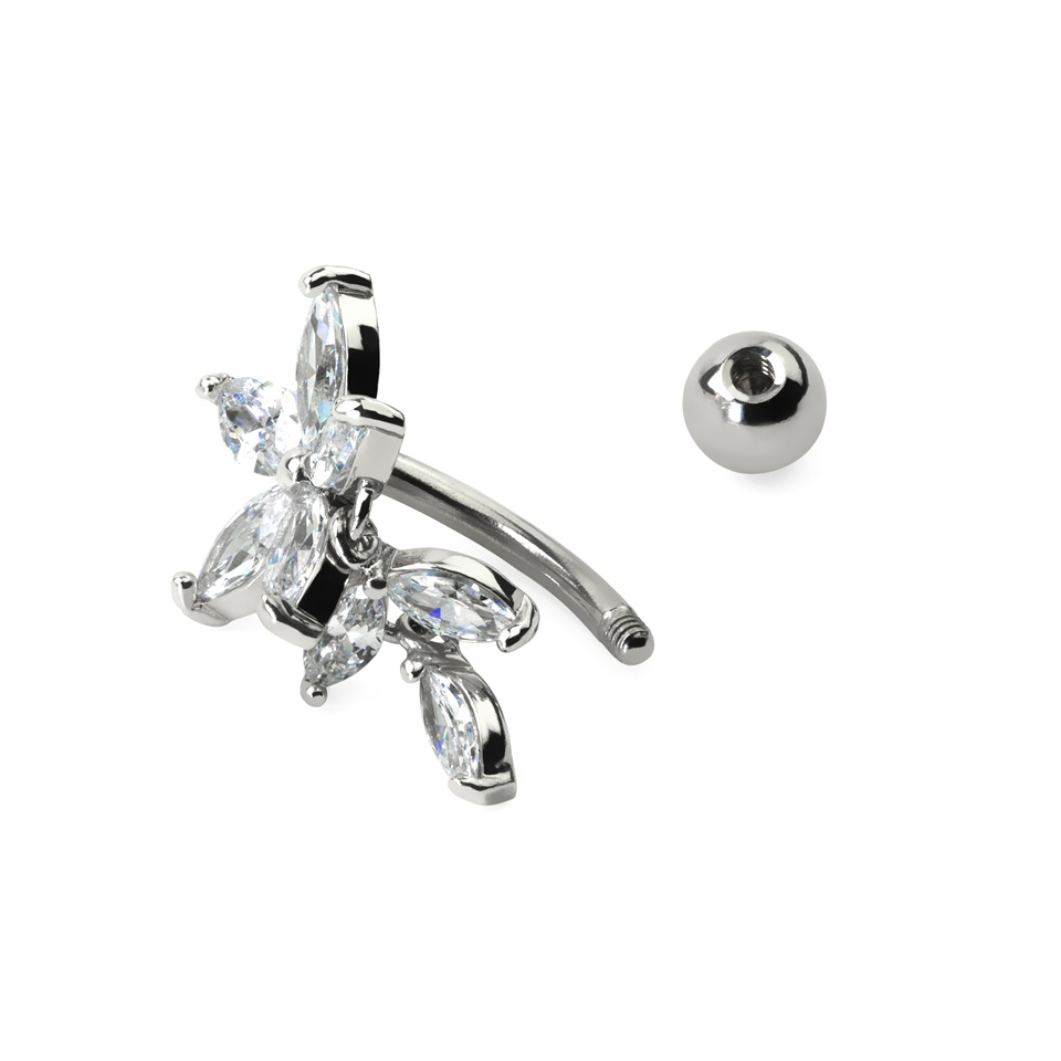 Omvänd navelpiercing med blomma av sten