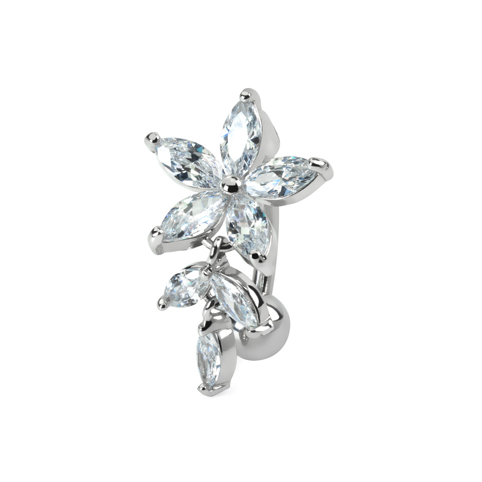 Namn: Omvänd navelpiercing med blomma av sten