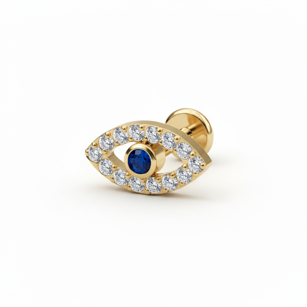 Onda ögat-labret i titan från Bodymod Trend är inte bara ett smycke, det är ett litet skydd för dina piercingar. Liten men slående, och adderar mening med stil.
