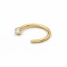Denna öppna titanring med sten håller det enkelt och okomplicerat. En liten sten sitter längst ut på den öppna kurvan och ger precis lagom detalj utan att kännas uppklädd. För att bära den, för den öppna änden genom örsnibben och rotera den framåt tills den sitter på plats. Den funkar både på övre och nedre örsnibben och staplas lätt ihop med de ringar du redan bär.