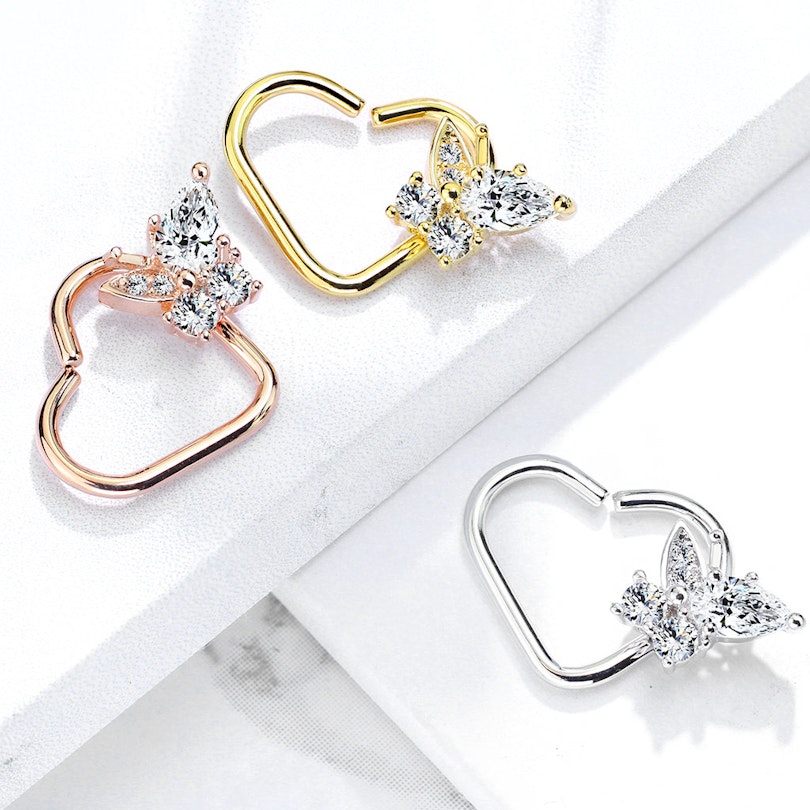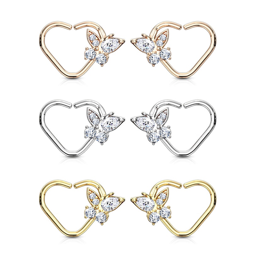 Öronpiercing formad som ett hjärta med fjäril
