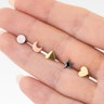 Jag beställde en måne och direkt efter en stjärna och ett hjärta. Dessa blev en vacker helhet i örat. Kanten av månen och stjärnan är skarpa, men de har inte stört mig när jag sover, precis som inte smyckets kulbaksida.