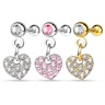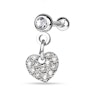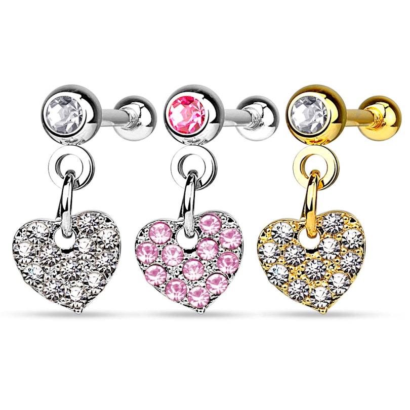 Det här smycket är dekorerad med ett litet hänge som hänger ned från den 4 mm stora kulan på framsida. I hänget hittar du ett sött hjärta som är fullständigt täckt av vackra facetterade stenar. När stenar har slipats med många facetter eller ytor kommer ljuset spegla sig i den från i stort sätt alla vinklar. Det är denna speciella slipning som får stenarna att glittra och glimta som små stjärnor varje gång ljuset rör dem. På baksidan stängs smycket med en 3 mm stor låskula.