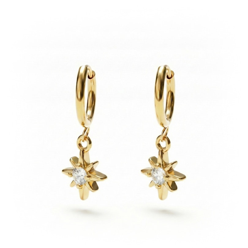 Detta par av huggieringar med en skinande sol känns som en liten humörhöjare varje gång du använder dem. På varje ring hänger en detaljerad skinande sol med en sten i mitten. Den ger ditt öra precis den rätta mängden personlighet utan att försöka för mycket.