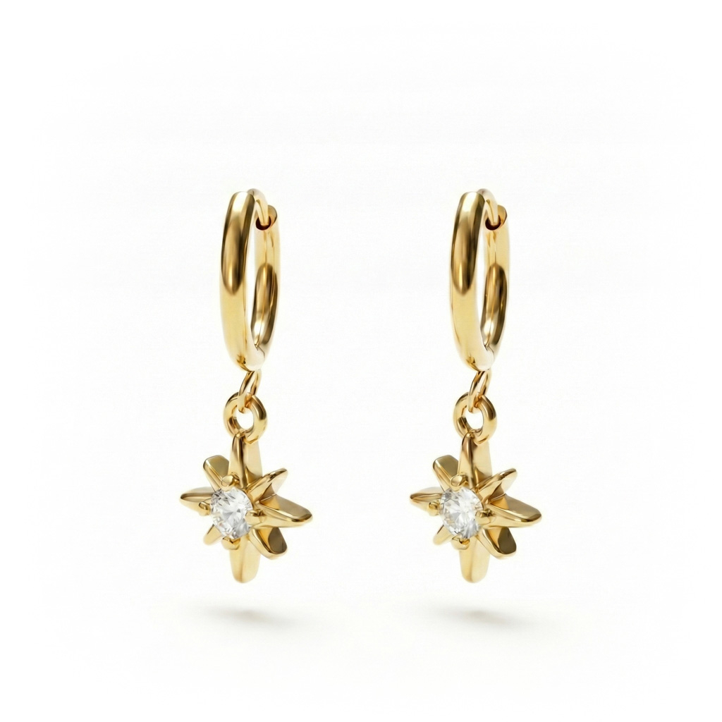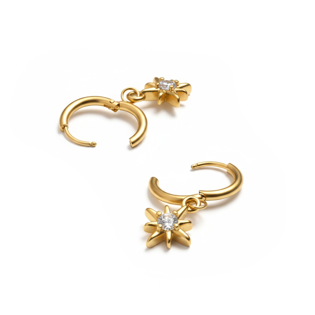 Detta par av huggieringar med en skinande sol känns som en liten humörhöjare varje gång du använder dem. På varje ring hänger en detaljerad skinande sol med en sten i mitten. Den ger ditt öra precis den rätta mängden personlighet utan att försöka för mycket.