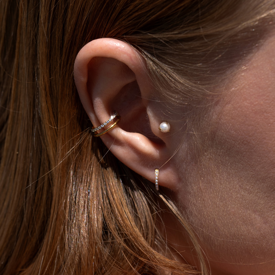 Gjord på implantat-klassad och allergivänlig titan gör detta smycke perfekt för känslig hud och säkerställer långvarig komfort och irritationsfri användning. Tillgänglig i färgerna silver eller guld, och i 8 mm eller 10 mm i diameter, gör smycket perfekt för helix, öronsnibb eller andra öronpiercingar.
