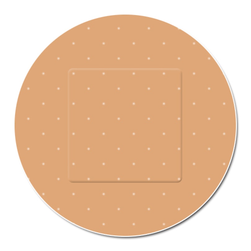 Plåstret är försedd med en bomull kudde som kommer att absorbera eventuella sårvätska. Plåstret mäter 22 mm i diameter och den lilla bomulls kudden mäter ca. 11 mm på varje sida. Så som utgångspunkt är plåstret gjort till one-point-piercingar som dermal ankare eller skindiver. Plåstret kan naturligtvis också användas till andra piercingar så länge de kan täckas av kudden.