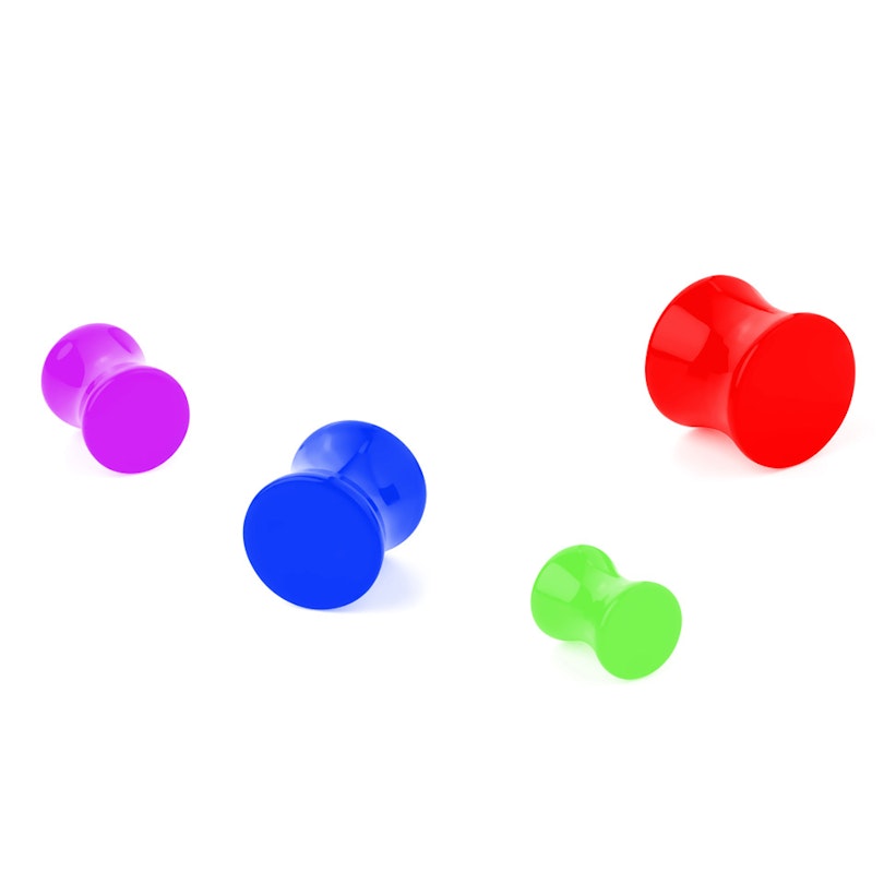 Pluggen är som sagt en double flared plugg utan skarpa kanter som till sist har blivit en aning högglanspolerat för ett finare finish. Modellen hittas i storlekar från 3 mm. och ända upp till 25 mm. och det du kan se på produktbilden, hittas den också i ett hav av färger.