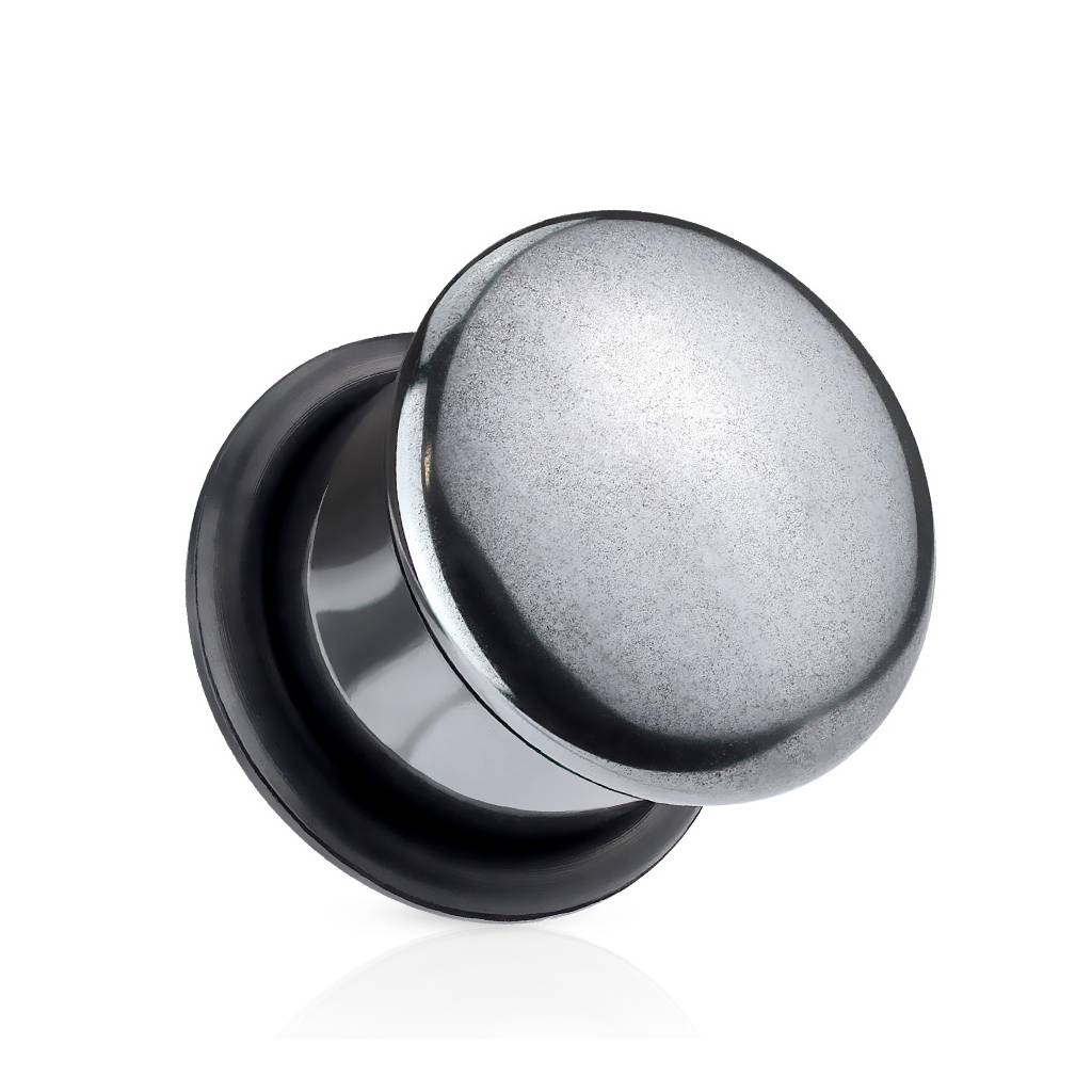 Här har du en härlig slätpolerad plugg av hematitsten. Hematitstenen kallas också för en blodsten och det sägs att olika typer av stenar har olika positiva egenskaper som kan smitta av sig på den som bär stenen. För hematit eller blodstenarna sägs effekten av stenen att vara självkontroll, handlingskraft och styrka. Ifall dessa egenskaper tilltalar dig så kunna denna plugg kanske vara det riktiga valet av smycke för dig.