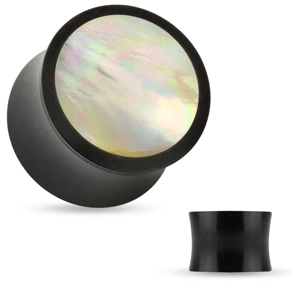 På framsidan av smycket sitter det en liten regnbågsfärgad platta. Denna platta är också tillverkad av ett organiskt material, nämligen pärlemor. Pärlemorsdesignen gör detta annars enkla piercingsmycke riktigt extraordinärt och den svarta färgen framhäver verkligen pärlemoren. Så om du letera efter en plugg som är helt organisk har du kommit till helt rätt ställe.