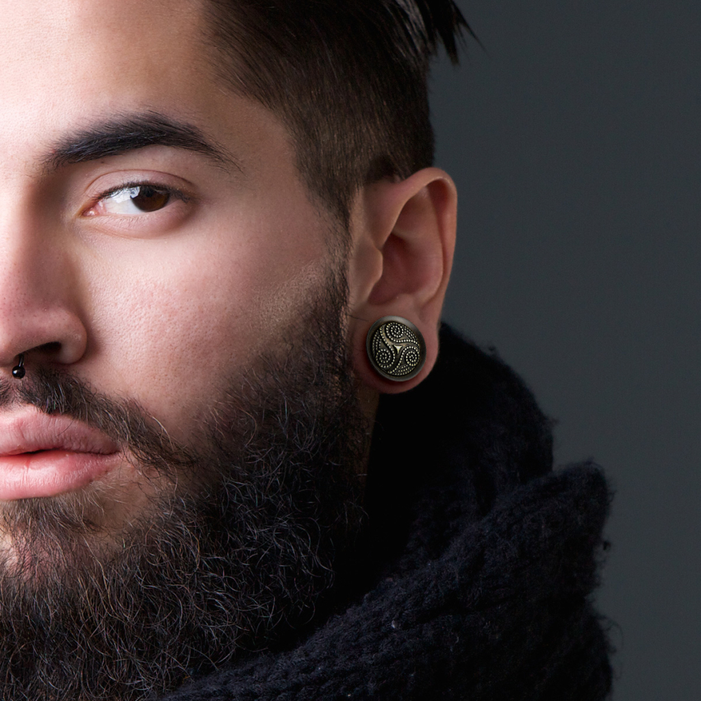 Riktigt läcker lyxig plugg av härligt varmblodigt rosenträ eller snyggt mörkt ebenholt, vilka båda är organiska material som tillåter din töjning att andas. Den här pluggen är till och med dekorerad med det snyggaste tribalmönster av prickar på framsidan som verkligen ger smycket en sofistikerad och annorlunda look.