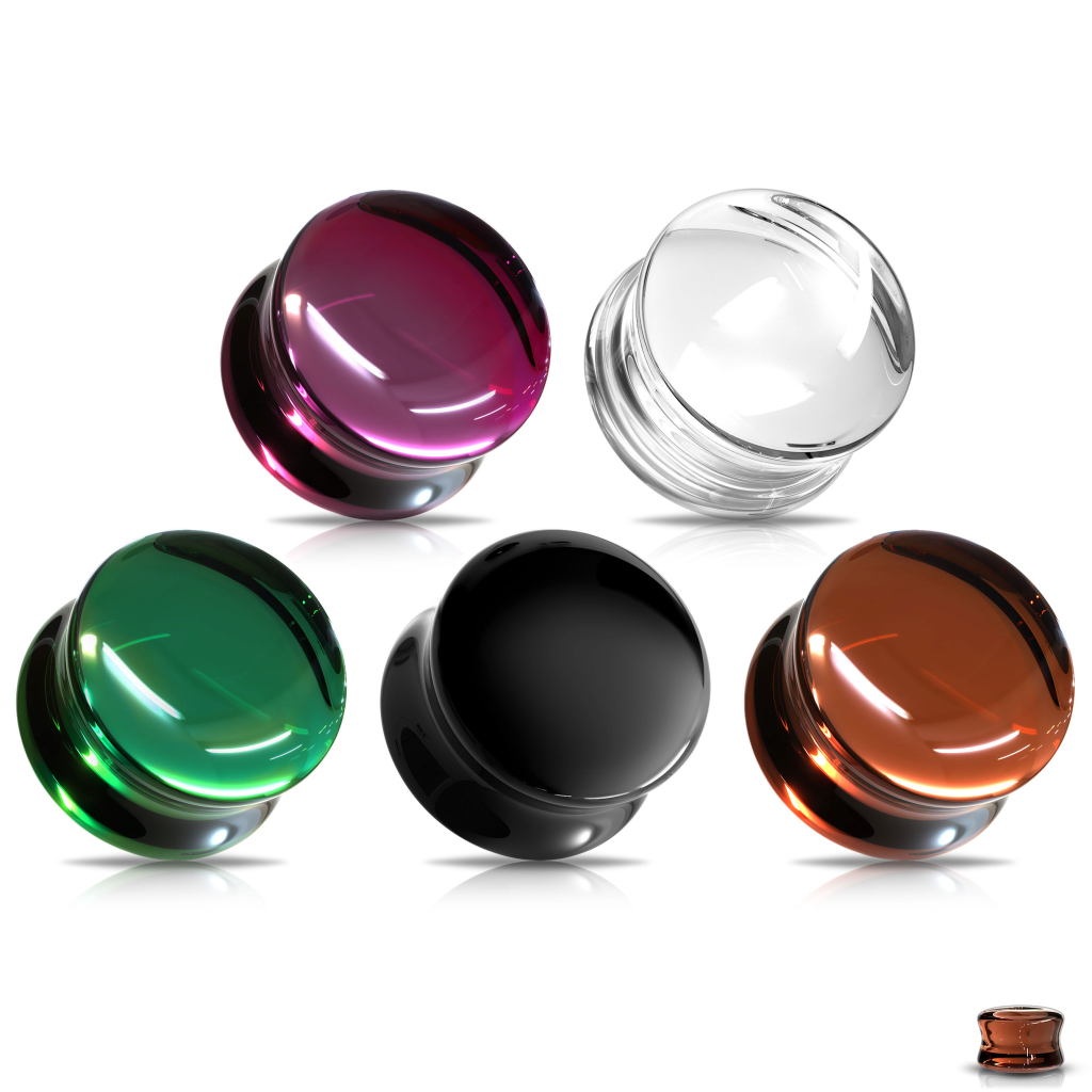 Pluggen är gjort av glas och är en såkallad "double flared plug". Det betyder att smycket är ett helt stycke glas med två förhöjda kanter. Du sätter därför i smycket i lugn och ro, och vränger i det - man kan med fördel ta ett varmt bad innan man sätter i smycket då det varma vattnet kommer göra örat mer elastiskt och lättare att arbeta med.