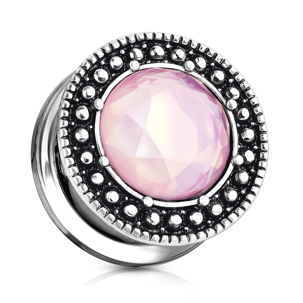 Plugg med oxiderad framsida och rosa sten