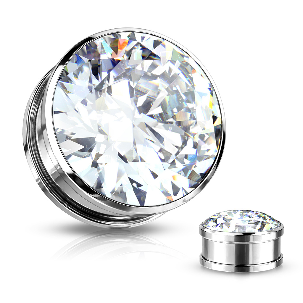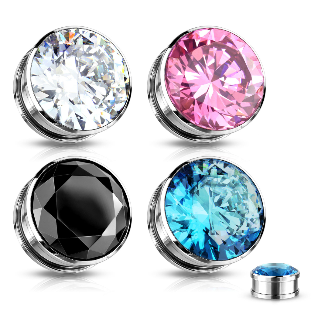 Denna plugg är gjort av kirurgiskt stål och finns i 4 färger och många olika storlekar allt beroende på hur långt du är med din töjning. Fronten sitter som en skinande diamantformad sten i en snygg färg som syns tydligt helt ned i den minsta storlek plugg. Den här pluggen låser du bakom örat med en skruvgänga som gör den riktigt enkel att sätta. Dessutom får du en plugg som är enkel i sig att ha sittande.