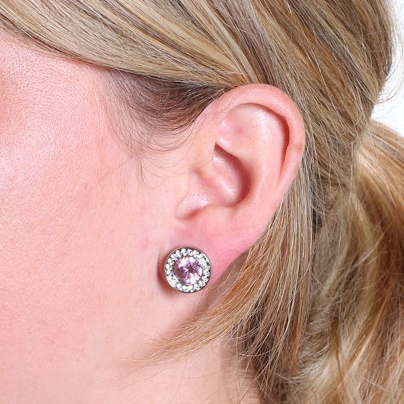Pluggen är gjord av kirurgiskt stål och har på baksidan en skruvgänga för att det ska vara enklare att få in smycket i örat. På framsidan finns den stora stenen, som du själv väljer färgen på, i centrum. Runt om stenen sitter det i kanten många små klara stenar. Ju större diameter du väljer, desto fler stenar sitter som runt i kanten.