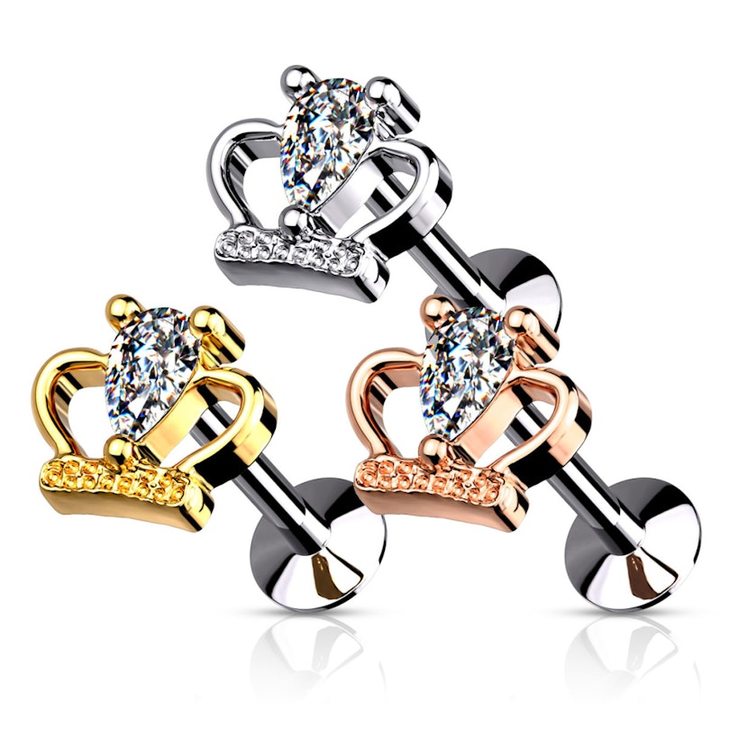 Namn: Push-in labret med krona och sten