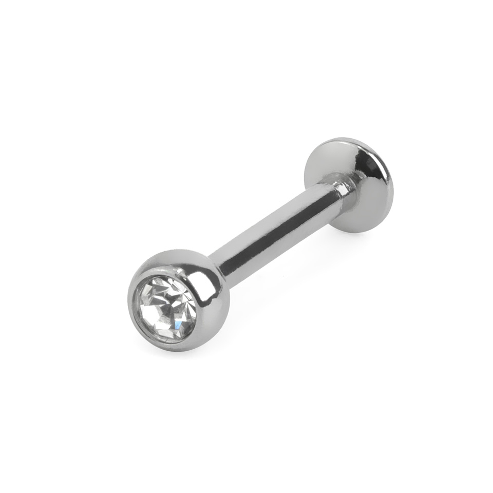 Labretten liknar många andra vanliga labretter med sten. Skillnaden är dock att denna labret inte har en gänga. Du sätter i smycket genom att trycka stenen ut från staven. Stenen sitter fast på ett litet stift som går ner i staven. Staven är som du kan se på bilden, lätt böjd så att den sitter tätt ner i staven. Det har den fördelen att det inte är någon gänga som kan tära din piercing och bli inflammerad.