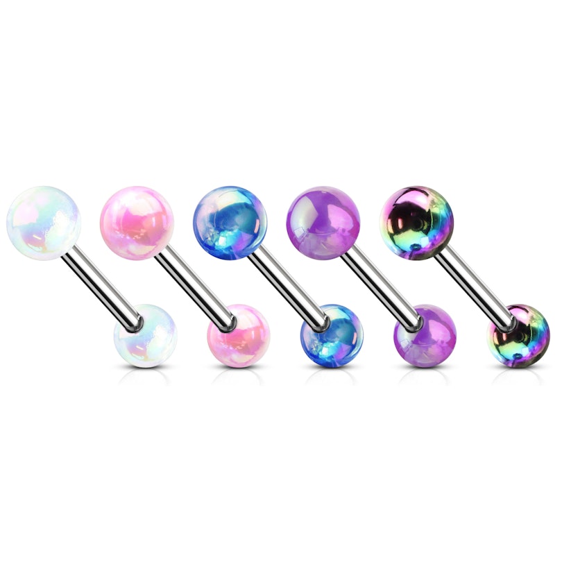 Hela smycket är gjort av kirurgiskt stål men staven har inte belagts, vilket gör att den är blank oavsett vilken färg du väljer på kulorna. Staven mäter 1,6 mm i trådtjockhet och passar därför bra till en bröstpiercing, men kan självklart också användas till många andra piercingar, så länge måttet på smycket passar måttet på din piercing.