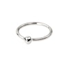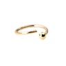 Snygg och praktisk ring av 14 karats guld. Den är snygg på så sätt att det inte är något annat än en rund ring i enda färg med en enda kula. Sedan är den också praktisk eftersom det inte finns någon låsmekanism som är svår att hantera eller faller ut ur stycket och tappas bort. Kulan är nämligen fast på den ena änden av ringen så att den blir en del av ringen. Det är ett smycke utan lösa delar.
