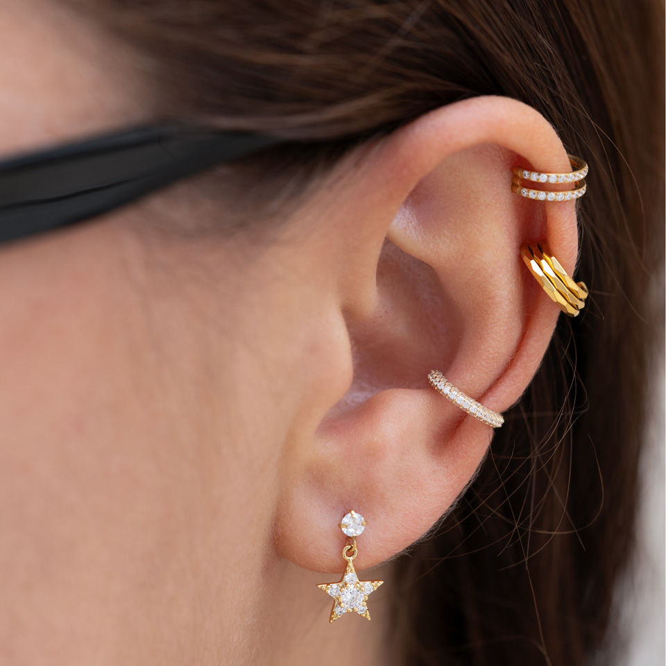 Om du gillar att byta smycken ofta så kommer det här eleganta smycket att göra ditt liv så mycket lättare. Ringen har ett gångjärn, vilket är en av de mest populära låsningarna. Dra i det lilla segmentet för att öppna, sätt smycket i din piercing och stäng det med ett klick. Så lätt bär du ett smycke som får dig att skina! Klara CZ-stenar runt ringens kant gör det till ett riktigt iögonfallande smycke för din septum eller öronpiercing som helix eller daith. Ringen är gjord av högkvalitativt 24 kt. guld och finns tillgänglig i stilrent vitt guld och klassiskt gult guld. Ringens trådtjocklek är 1,2 mm, och du kan välja mellan en diameter på 8 mm och 10 mm.