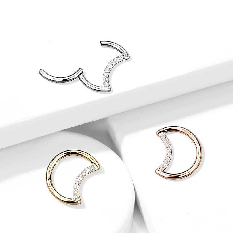 Ringen har högklassiga dekorationer, eftersom titan är ett dyrt material. Den har också ett gångjärn vilket är vanligt på smycken som kostar lite extra. Dessutom är stenarna som du ser på halvmånen placerade med perfektion i en rak linje, om vi ignorerar att de är placerade på en båge.
