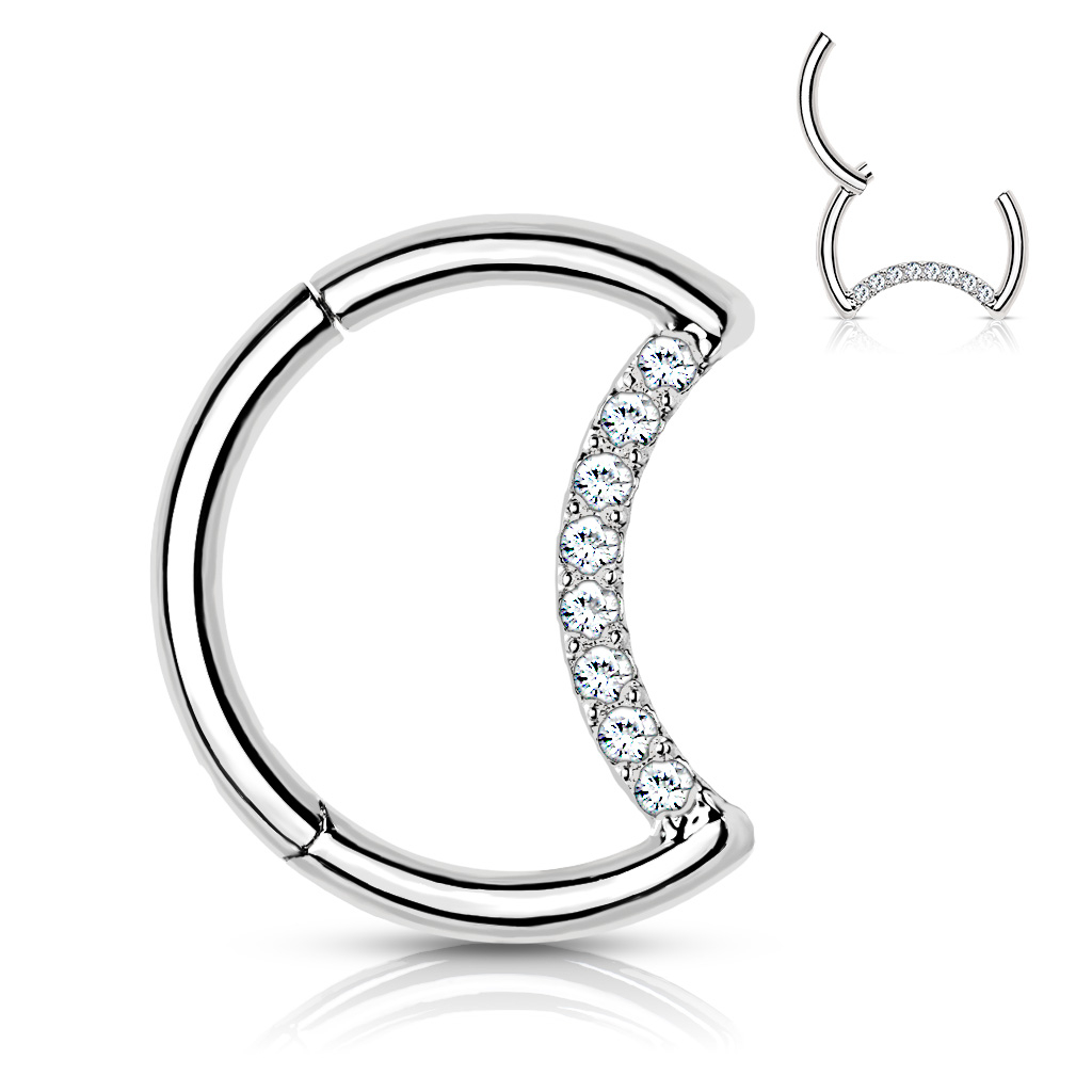 Ringen har högklassiga dekorationer, eftersom titan är ett dyrt material. Den har också ett gångjärn vilket är vanligt på smycken som kostar lite extra. Dessutom är stenarna som du ser på halvmånen placerade med perfektion i en rak linje, om vi ignorerar att de är placerade på en båge.