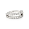 Ringen som du ser är vad vi kallar för en ändlös ring, inte för att den inte har några ändar, de är bara svåra att se om man inte vet vart man ska kika. Men tittar du på bilden kan du se att ringen har en vridning i hörnet. Du öppnar alltså smycket genom att vrida ringens ändar från varandra, och sedan sätta i smycket och vrida tillbaka dem på plats.