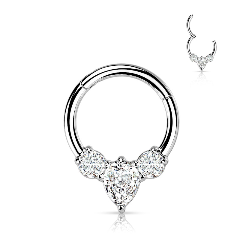 Ring med gångjärn av kirurgiskt stål med päronformad centersten
