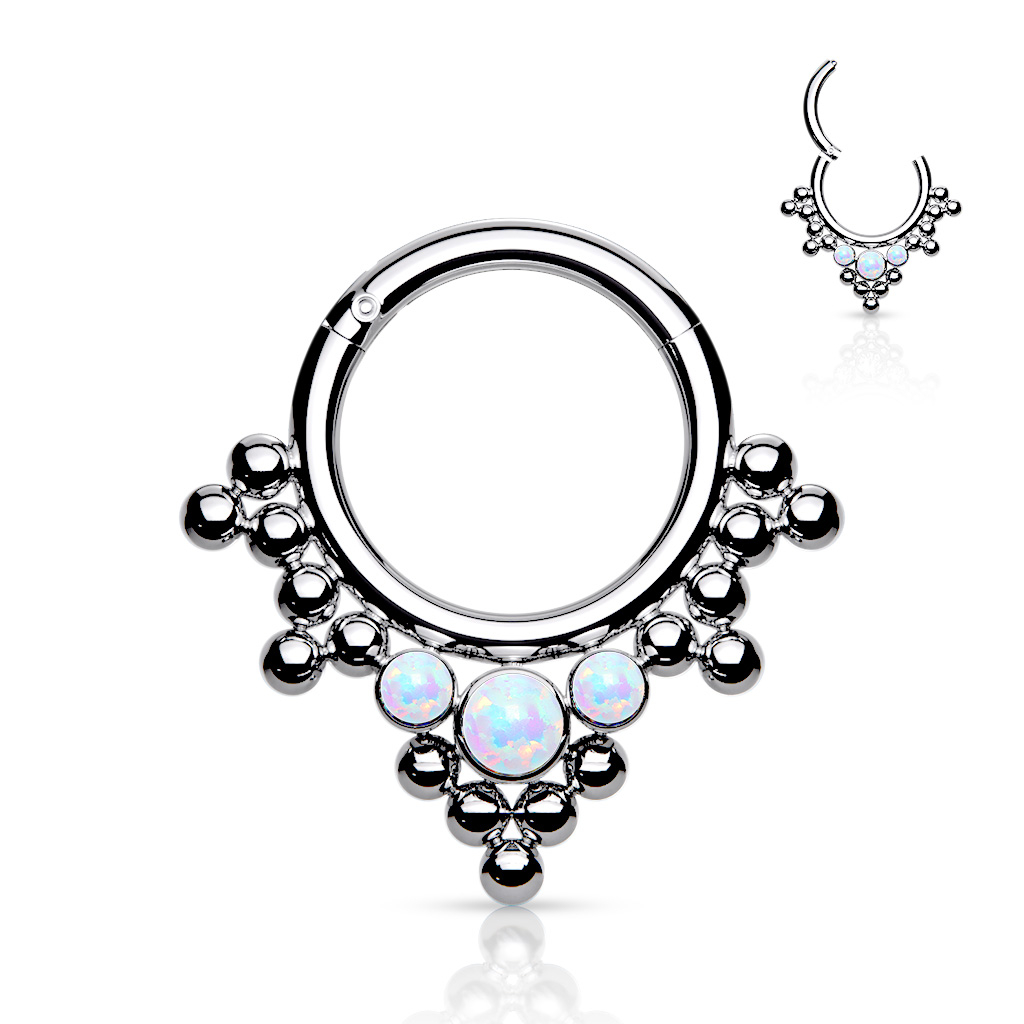 Namn: Ring med gångjärn i titan med pärlor och opaler