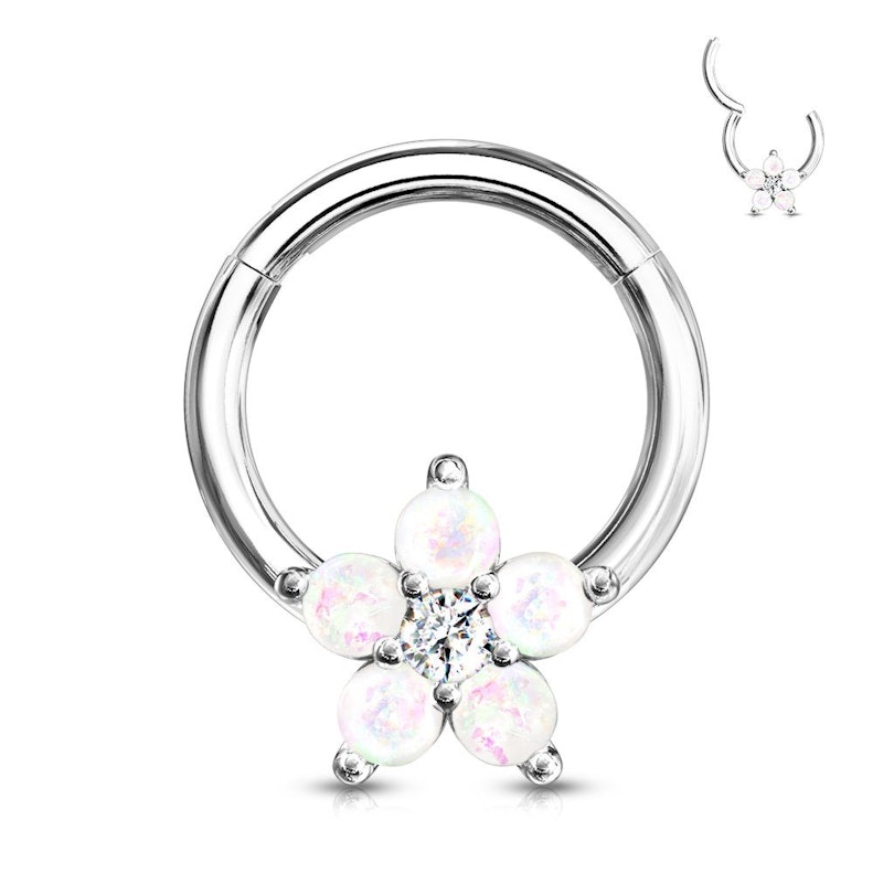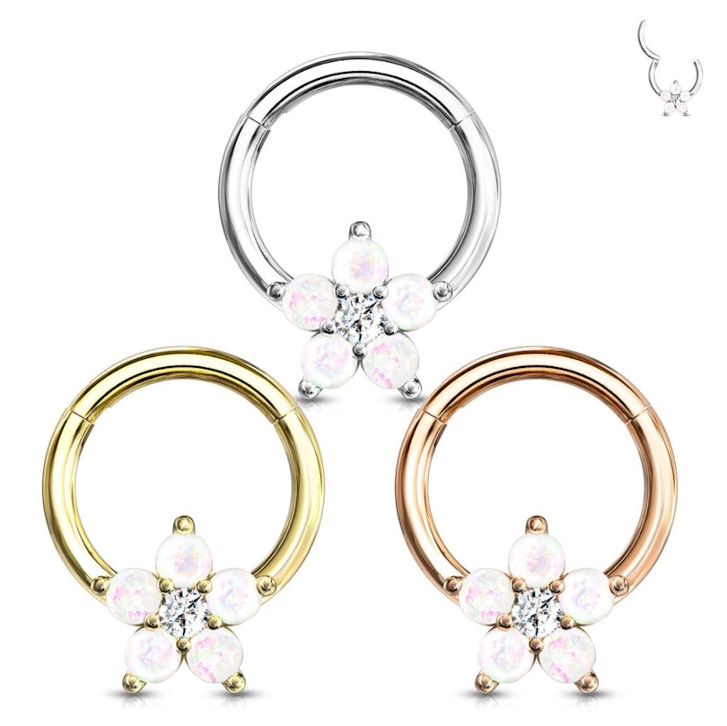 På framsidan av ringen sitter en blomma. Det är en formation av 5 opaler som liknar en vacker blomsterbukett där varje fem av opalerna ska föreställa ett blad på blomman. I mitten sitter en klar centersten.