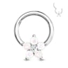 Denna ring är en oändlig ring. Men helt oändlig är den inte för annars hade det varit svårt att få i sin piercing. Som du kan se på bilden så har den ett hänge. Hänget säkerställer att ringen kan öppnas och stängas. I den motsatta änden av hänget sitter det ett litet stycke fast i resten av ringen, med hjälp av den lilla fördjupningen i ringens ände. På det sättet finns det inga lösa kulor eller andra delar som kan tappas bort med tiden.