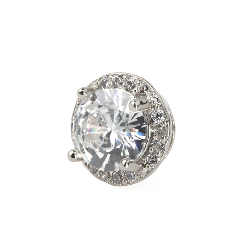 Detta smycke är gjort av mässing med en liten skruv baktill som är gjort av kirurgiskt stål. I mitten av smycket sitter det en stor slipad mittensten som reflekterar allt ljus som träffar den. Runt mittenstenen sitter det en massa små klara stenar. Hela smycket har blivit belagt med olika beläggningar som exempelvis 14 karat guld på guldmodellen. Som nämnts tidigare så kan du välja mellan flera olika färger på själva smycket, men du kan också välja färg på stenen i mitten. Du kan bland annat få smycket i en blank utgåva, eller en rosaguld utgåva. Därutöver kan du också få en rosa eller turkos mittensten. På det sättet kan du själv välja den sammansättning av färger du helst tycker om.